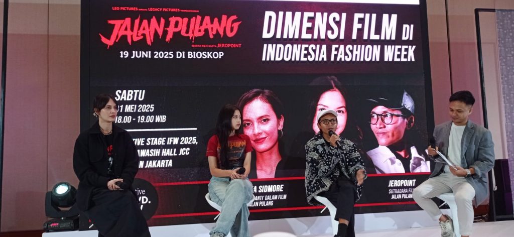 Tampak kehadiran sutradara dan beberapa pemain film horor ” Jalan Pulang ” tengah mempromosikan film terbaru nya yang akan tayang 19 Juni 2025 di bioskop seluruh Indonesia. Production house LEO Pictures turut ambil bagian dari rangkaian kegiatan promosi dalam acara Fashion Week 2025 dengan tema ‘Dimensi Film di Indonesia Fashion Week 2025.