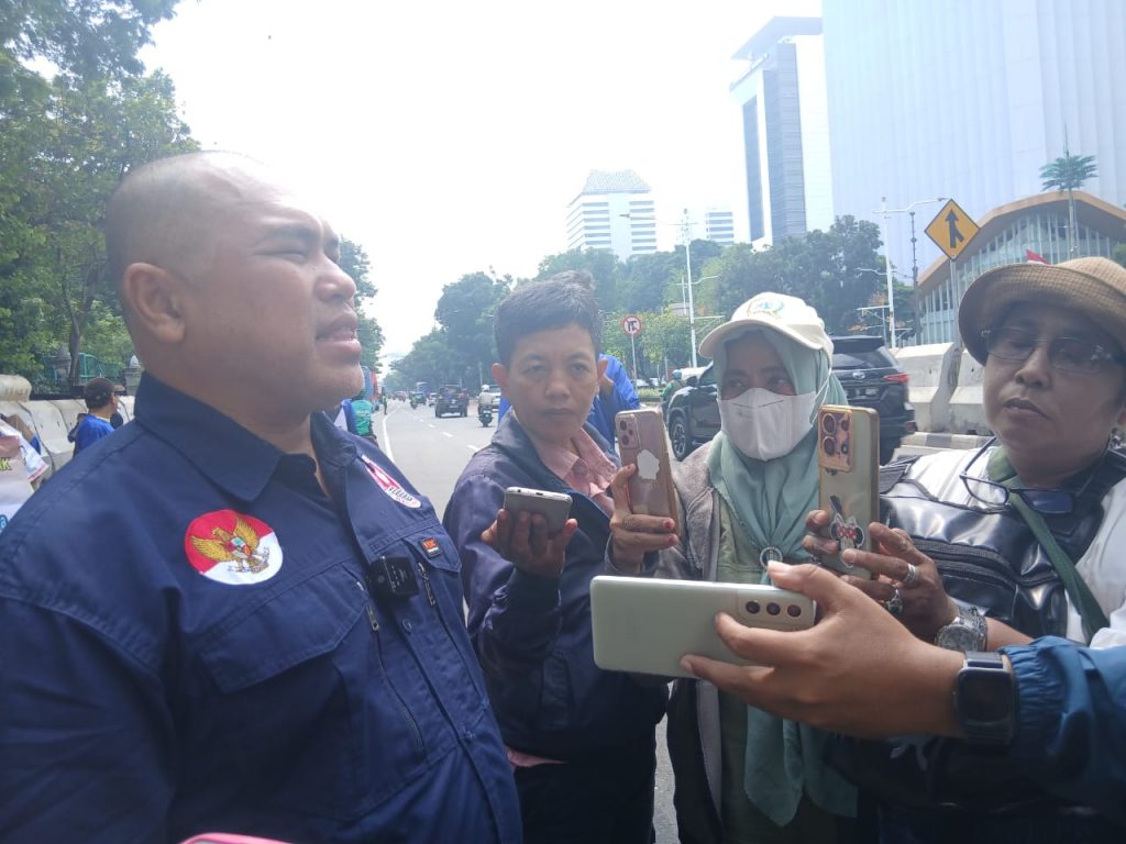 Jakarta Pusat-Komunitas Peternak Unggas Nasional (KPUN) unjuk rasa di depan monas Jakarta Pusat. Kamis (09/10/25).